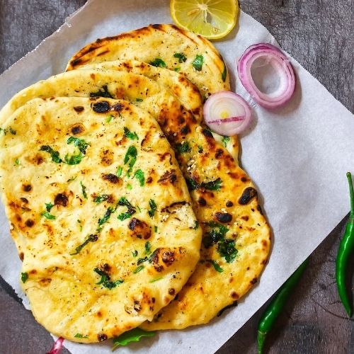 Bhija kulcha, soft bread, spicy chickpea curry.