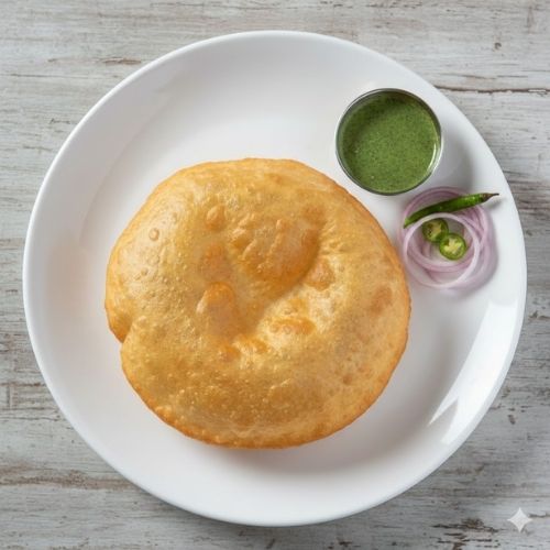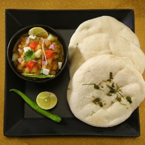 Crispy stuffed flatbread, spiced potatoes, chole.